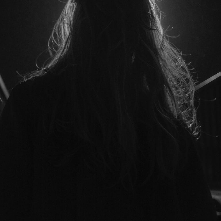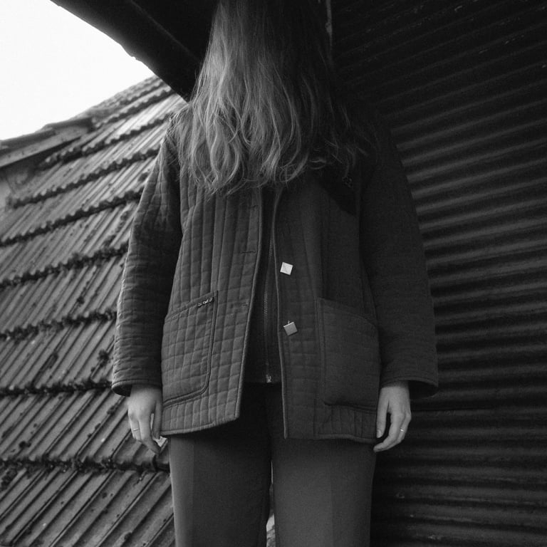 Dans cet environnement urbain, le visage est masqué par les cheveux. Ce geste n’est pas une disparition mais une nécessité. Le masque devient un filtre, une barrière protectrice face à un monde qui contraint, qui impose ses codes et ses normes. Montrer son visage reviendrait à s’exposer ; le cacher permet de préserver une part de soi, de maintenir une distance vitale avec l’extérieur.